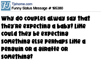 X is Why do couples alway say that they're expecting a baby? Like could they be expecting something else perhaps like a penguin or a giraffe or something?