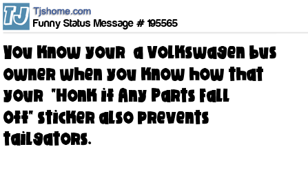 X is You know your a Volkswagen bus owner when you know how that your "Honk if Any Parts Fall Off" sticker also prevents tailgators.
