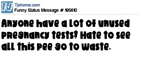 X says Anyone have a lot of unused pregnancy tests? Hate to see all this pee go to waste.