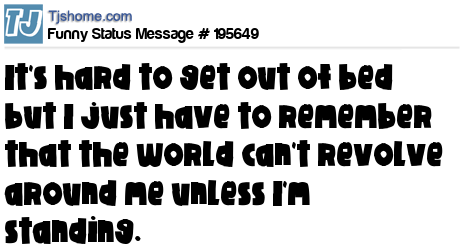 X says It's hard to get out of bed but I just have to remember that the world can't revolve around me unless I'm standing.