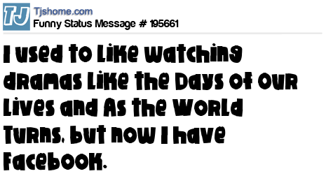 X is I used to like watching dramas like the Days of Our Lives and As the World Turns, but now I have Facebook.