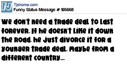 X We don't need a trade deal to last forever. If he doesn't like it down the road, he just divorce it for a younger trade deal, maybe from a different country...