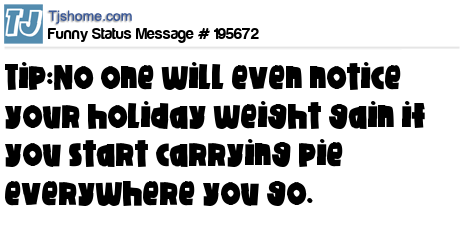 X says Tip:No one will even notice your holiday weight gain if you start carrying pie everywhere you go.