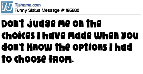 X says Don't judge me on the choices I have made when you don't know the options I had to choose from.