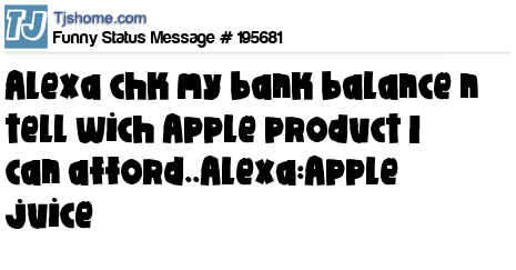 X is Alexa chk my bank balance n tell wich Apple product I can afford..Alexa:Apple juice