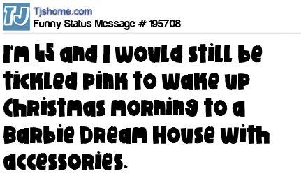 X says I'm 45 and I would still be tickled pink to wake up Christmas morning to a Barbie Dream House with accessories.