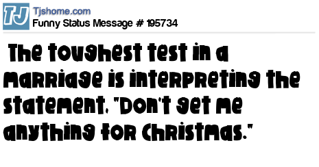 X says The toughest test in a marriage is interpreting the statement, "Don't get me anything for Christmas."