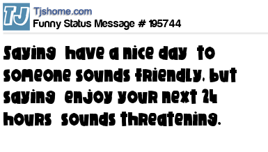 - # 189435 You can say "Have a nice day!" with no problem but you can't say "Enjoy the next 24 hours." without sounding mildly threatening.