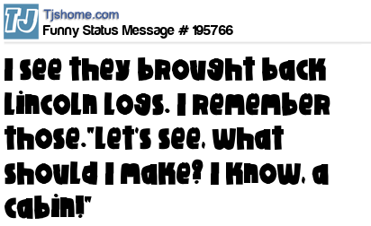 X says I see they brought back Lincoln Logs. I remember those."Let's see, what should I make? I know, a cabin!"