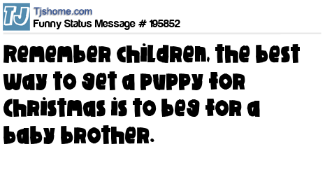 X says Remember children, the best way to get a puppy for Christmas is to beg for a baby brother.