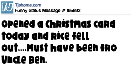 X says Opened a Christmas card today and rice fell out....Must have been fro Uncle Ben.