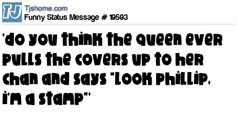 X 'do you think the queen ever pulls the covers up to her chan and says "look phillip, i'm a stamp"'