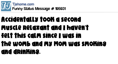 X says Accidentally took a second muscle relaxant and I haven't felt this calm since I was in the womb and my Mom was smoking and drinking.