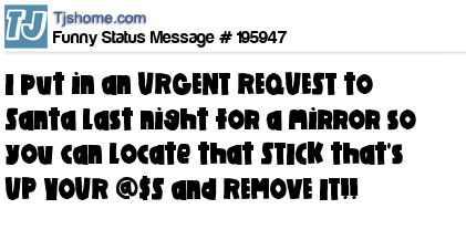 X says I put in an URGENT REQUEST to Santa last night for a mirror so you can locate that STICK that's UP YOUR @$S and REMOVE IT!!