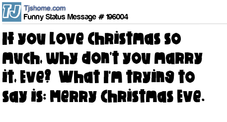 X says If you love Christmas so much, why don't you marry it, Eve? What I'm trying to say is: Merry Christmas Eve.