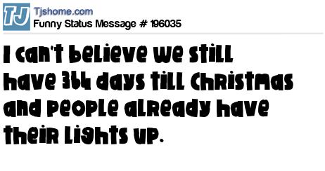 - # 120146 There are 363 days till Christmas and people already have their Christmas lights up... Unbelievable...