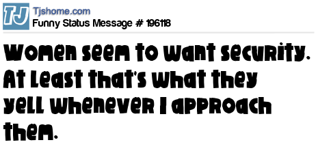 - # 204302 Women seem to want security. At least that's what they yell whenever I come near them.