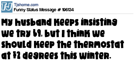- # 209567 My husband keeps insisting we try 69, but I think we should keep the thermostat at 70 degrees this winter.