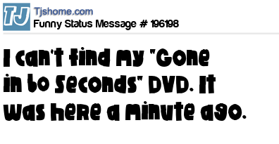 - # 207526 Now I can't find my "Gone in 60 Seconds" DVD. It was here a minute ago.