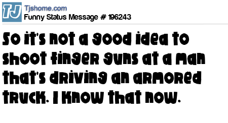X says So it's not a good idea to shoot finger guns at a man that's driving an armored truck. I know that now.