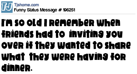 X is I'm so old I remember when friends had to inviting you over if they wanted to share what they were having for dinner.