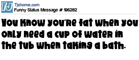 X is You know you're fat when you only need a cup of water in the tub when taking a bath.