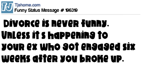 X says Divorce is never funny. Unless it’s happening to your ex who got engaged six weeks after you broke up.