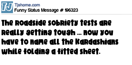 X says The roadside sobriety tests are really getting tough ... now you have to name all the Kardashians while folding a fitted sheet.