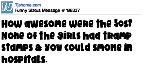 X says How awesome were the 50s? None of the girls had tramp stamps & you could smoke in hospitals.