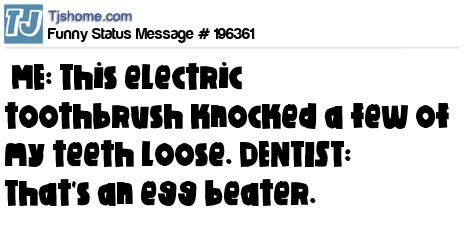X says ME: This electric toothbrush knocked a few of my teeth loose. DENTIST: That's an egg beater.