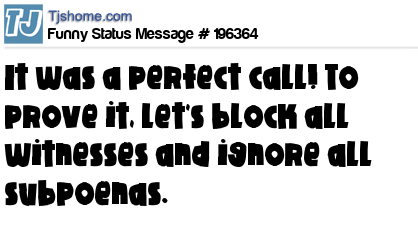 X is It was a perfect call! To prove it, let's block all witnesses and ignore all subpoenas.