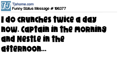 X says I do crunches twice a day now. Captain in the morning and Nestle in the afternoon...