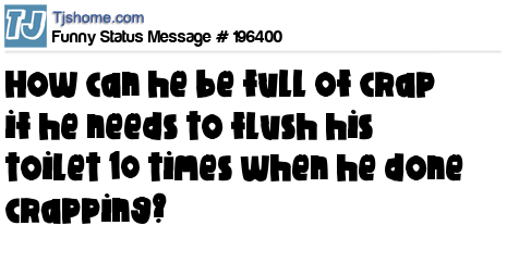 X is How can he be full of crap if he needs to flush his toilet 10 times when he done crapping?