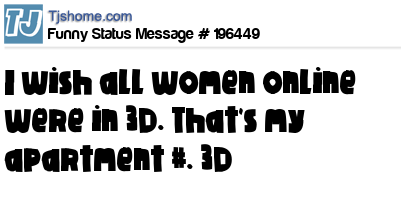 X says I wish all women online were in 3D. That's my apartment #. 3D