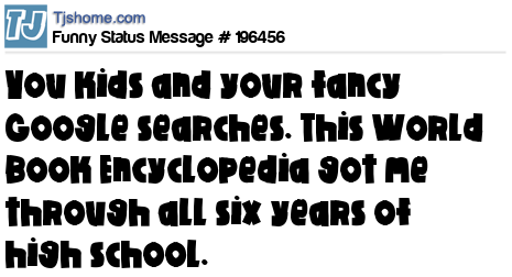 X says You kids and your fancy Google searches. This World Book Encyclopedia got me through all six years of high school.