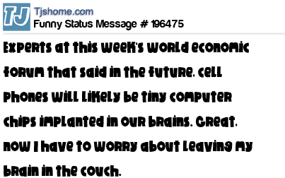 X says Experts at this week's world economic forum that said in the future, cell phones will likely be tiny computer chips implanted in our brains. Great, now I have to worry about leaving my brain in the couch.