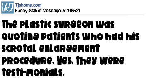 X says The plastic surgeon was quoting patients who had his scrotal enlargement procedure. Yes, they were testi-monials.