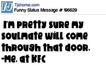 X says I'm pretty sure my soulmate will come through that door. -Me, at KFC