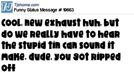 X says cool, new exhaust huh, but do we really have to hear the stupid tin can sound it make. dude, you got ripped off