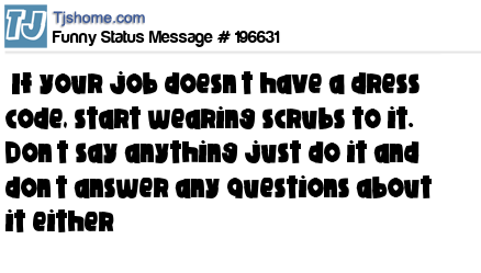 X says If your job doesn’t have a dress code, start wearing scrubs to it. Don’t say anything just do it and don’t answer any questions about it either