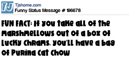 - # 156508 FUN FACT: If you take all of the marshmellows out of a box of Lucky Chrams, you'll have a bag of Purina Cat Chow