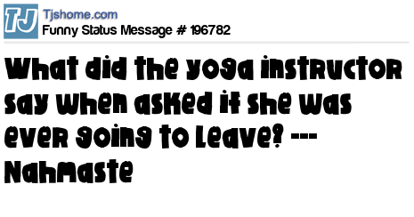 X What did the yoga instructor say when asked if she was ever going to leave? --- Nahmaste