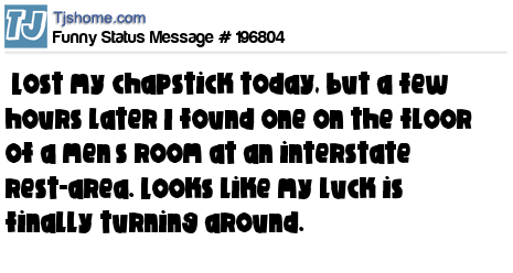X says Lost my chapstick today, but a few hours later I found one on the floor of a men’s room at an interstate rest-area. Looks like my luck is finally turning around.