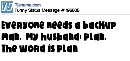 X says Everyone needs a backup man. My husband: plan. The word is plan