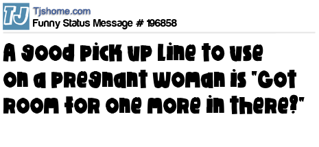 X says A good pick up line to use on a pregnant woman is "Got room for one more in there?"