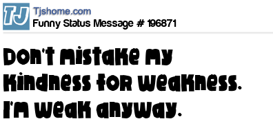 X says Don't mistake my kindness for weakness. I'm weak anyway.