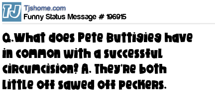 X says Q.What does Pete Buttigieg have in common with a successful circumcision? A. They're both little off sawed off peckers.