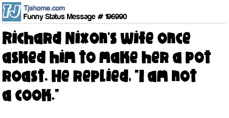 X says Richard Nixon's wife once asked him to make her a pot roast. He replied, "I am not a cook."