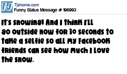 X is It's snowing! And I think I'll go outside now for 30 seconds to take a selfie so all my Facebook friends can see how much I love the snow.
