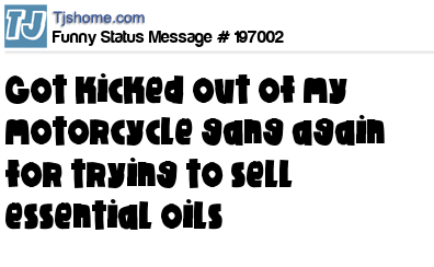 X says Got kicked out of my motorcycle gang again for trying to sell essential oils
